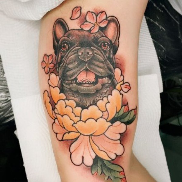 潮流纹身-色彩可爱的小猫小狗手臂纹身图片