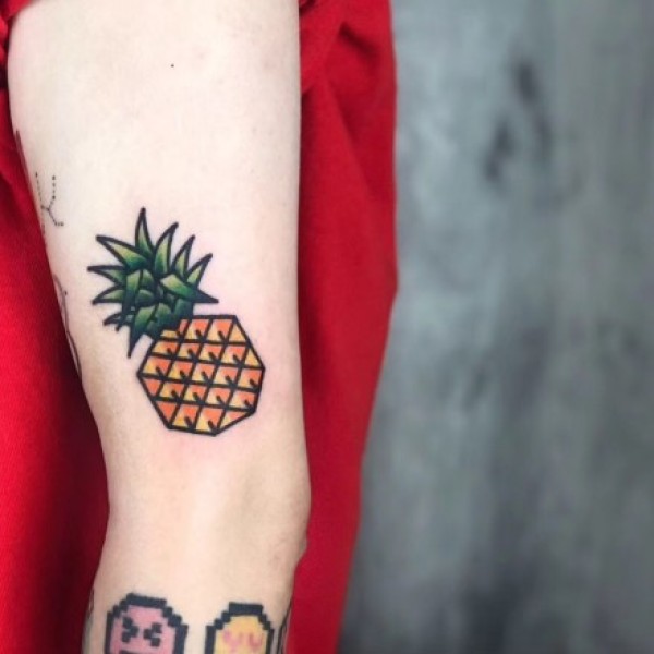 菠萝纹身图案 女生手臂上彩色的菠萝纹身图片