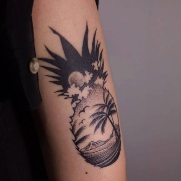 菠萝纹身图案 女生手臂上彩色的菠萝纹身图片