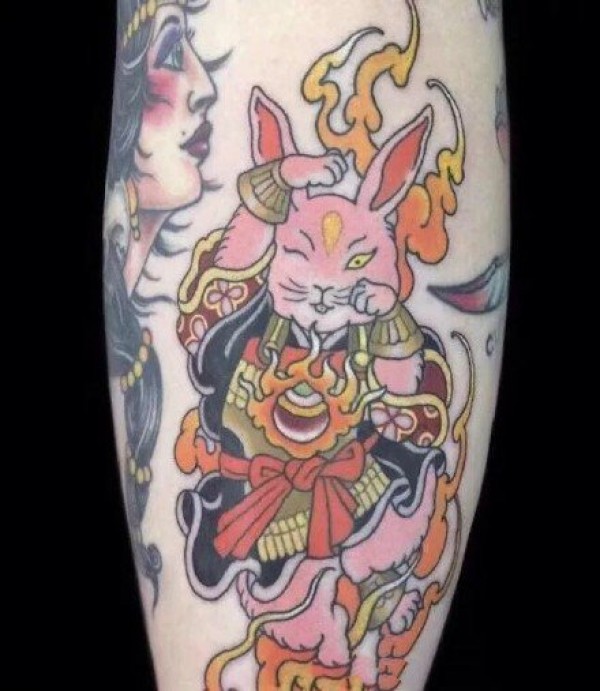 日式风格的传统花腿纹身作品欣赏