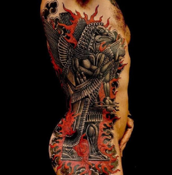 新传统风格的9张男性黑灰大满背纹身图案图片