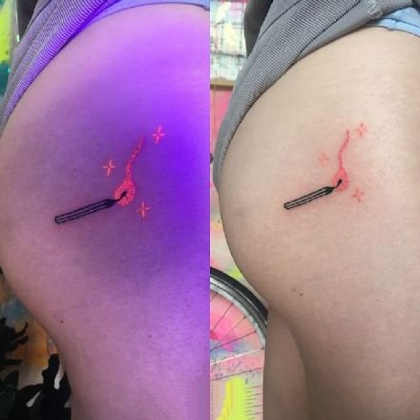 夜晚很漂亮的纹身图案搭配荧光纹身效果图欣赏