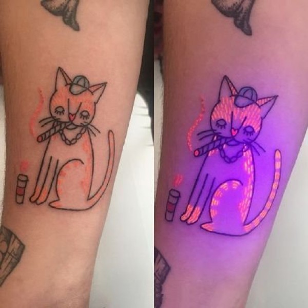 夜晚很漂亮的纹身图案搭配荧光纹身效果图欣赏