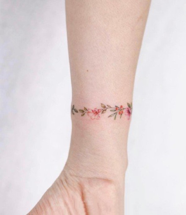 环绕手腕的小清新花环手环纹身
