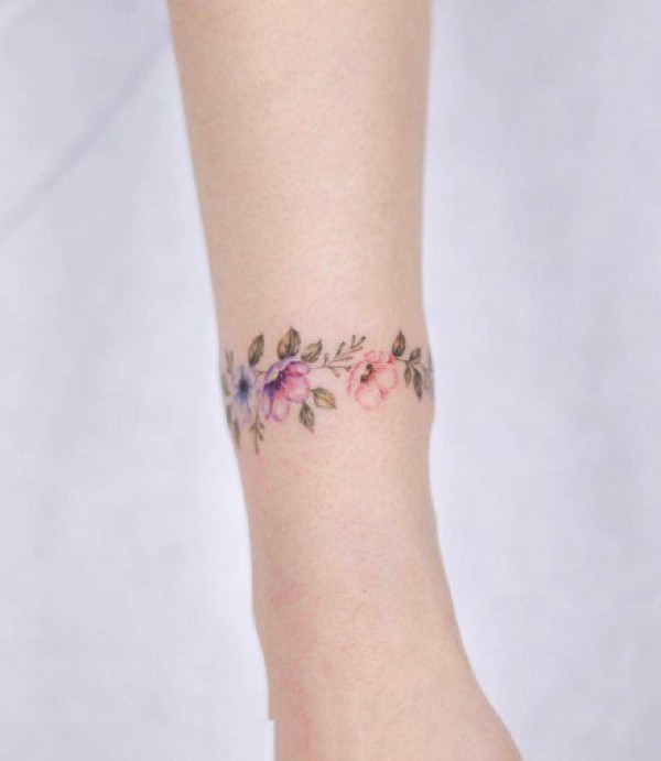 环绕手腕的小清新花环手环纹身