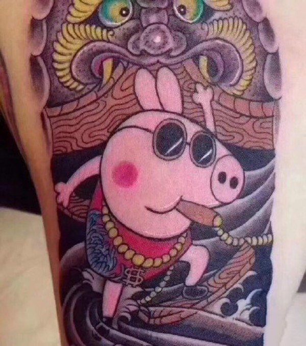 24张小猪佩奇纹身图案作品+手稿_小猪佩奇身上纹,掌声送给社会人