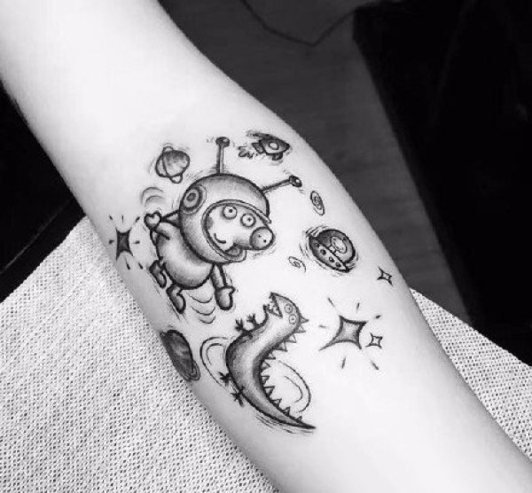24张小猪佩奇纹身图案作品+手稿_小猪佩奇身上纹,掌声送给社会人