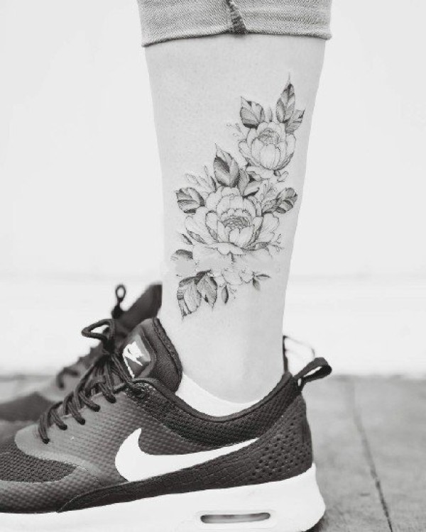 女性各部位的9款黑灰色素花纹身图片