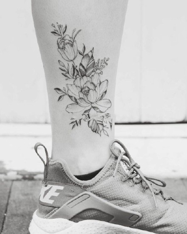 大臂素花纹身 9款女士的大臂黑灰花朵植物纹身图案