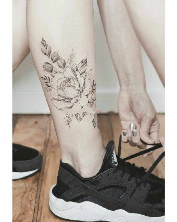 女性各部位的9款黑灰色素花纹身图片