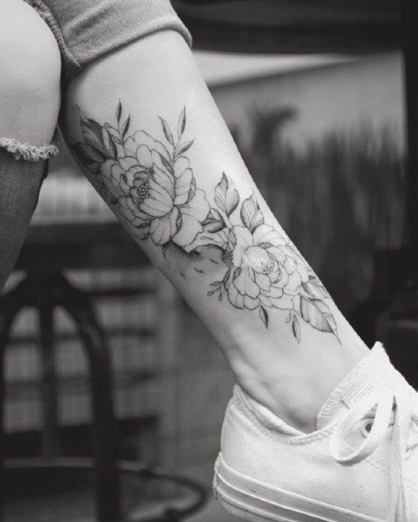 大臂素花纹身 9款女士的大臂黑灰花朵植物纹身图案