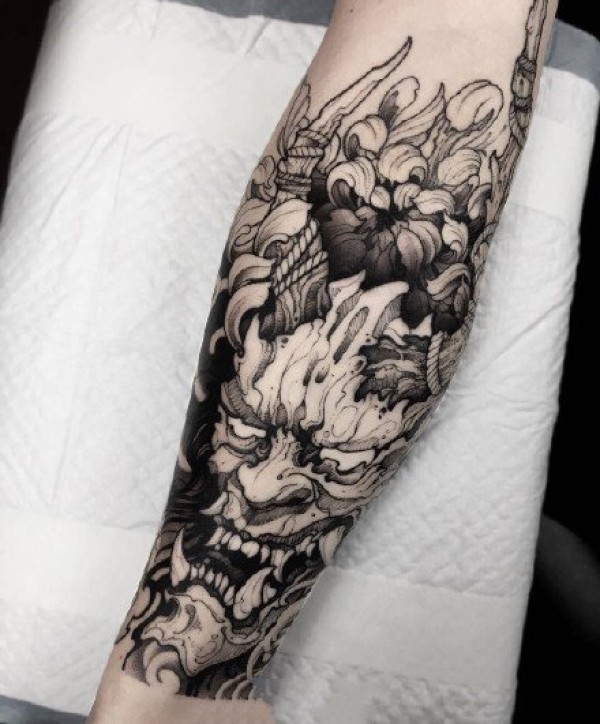 适合小臂上好看的黑灰纹身图案欣赏