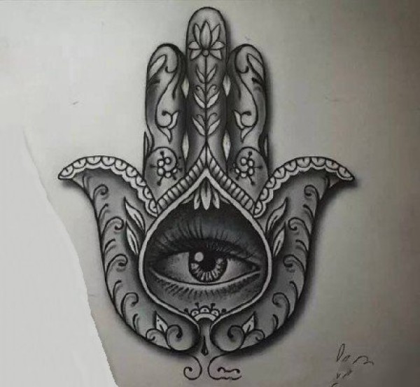 法蒂玛之手眼睛梵花线条纹身图案手稿