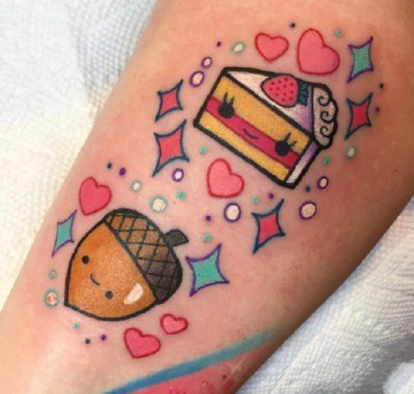 彩色的可爱卡通纹身小图美味的食物纹身图案