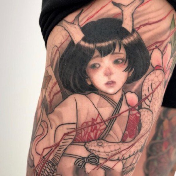 漫画美女纹身