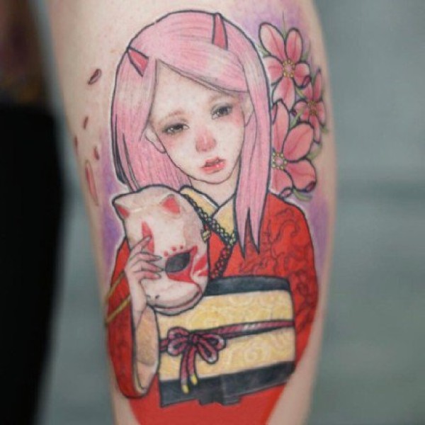 漫画纹身 日漫粉色风格的一组女郎纹身图片