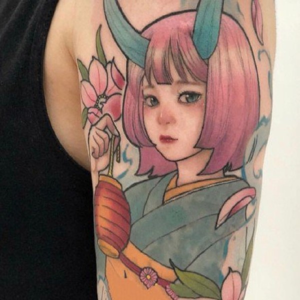 漫画纹身 日漫粉色风格的一组女郎纹身图片