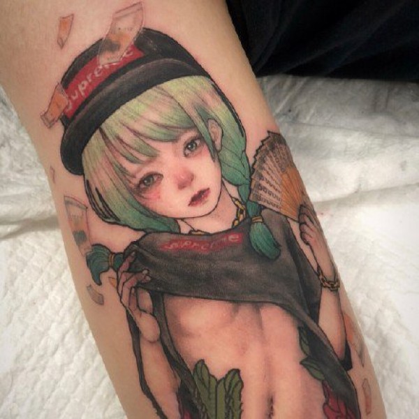 漫画纹身 日漫粉色风格的一组女郎纹身图片