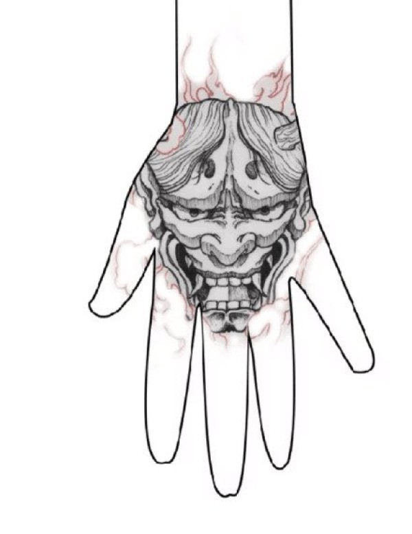 手背上的一组般若纹身效果图欣赏