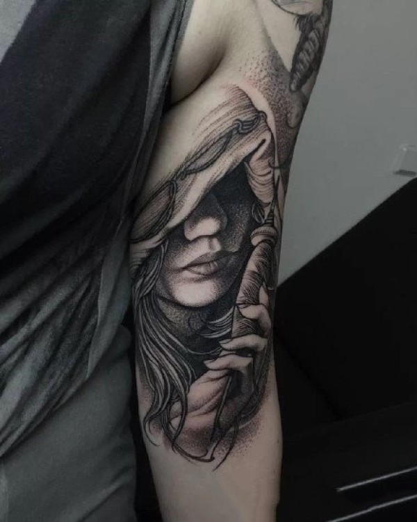 大臂外侧的9款包臂欧美写实纹身图片