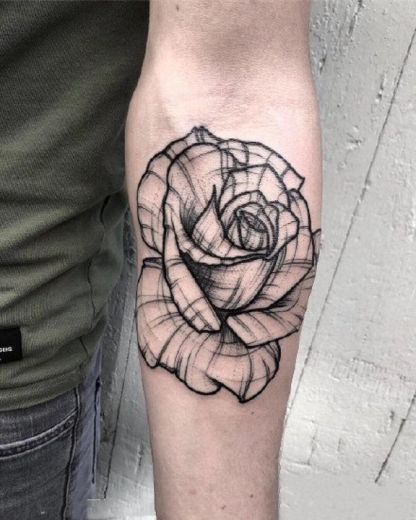 黑灰色玫瑰花和骷髅头纹身图片手稿