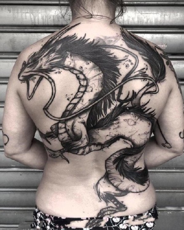 新传统风格的9张男性黑灰大满背纹身图案图片