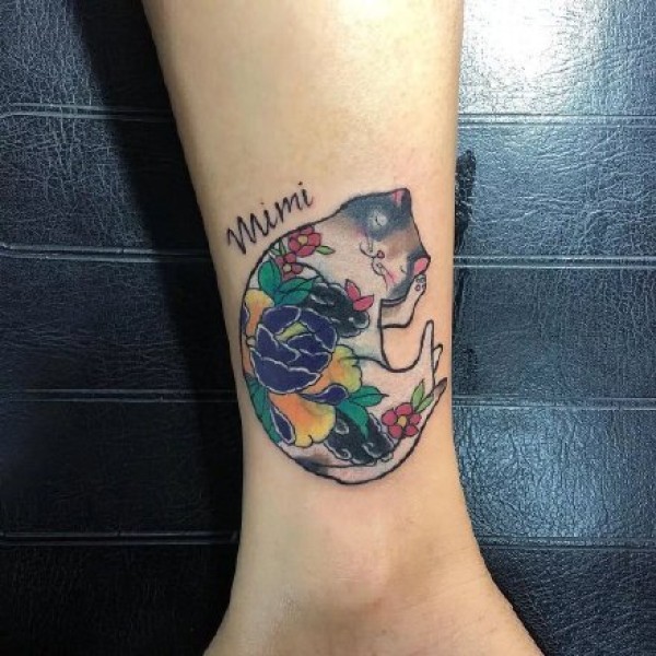不一样的日本浮世绘蓝色小猫咪纹身图片