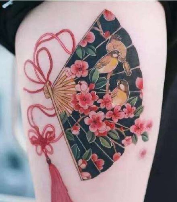 扇子纹身图案 10张彩绘纹身日本艺妓扇子纹身图案