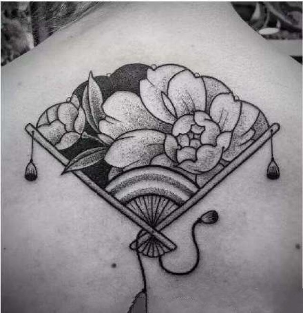 扇子纹身图案 10张彩绘纹身日本艺妓扇子纹身图案
