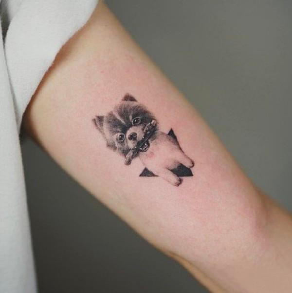潮流纹身-色彩可爱的小猫小狗手臂纹身图片