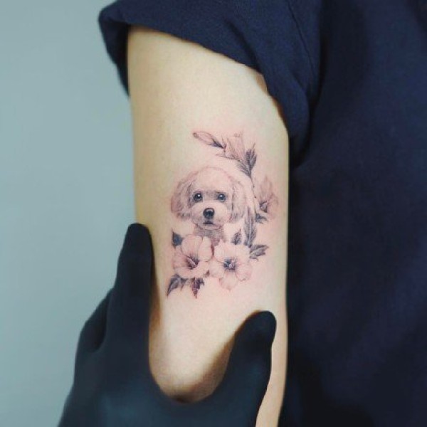潮流纹身-色彩可爱的小猫小狗手臂纹身图片