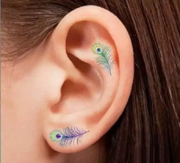 耳朵上的9张极简色彩小纹身图片
