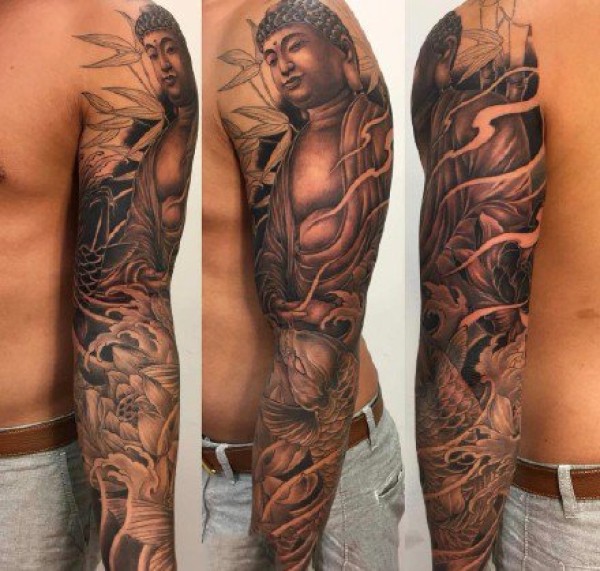 欧美花臂纹身_22张霸气黑灰欧美大黑花臂纹身图案作品图片