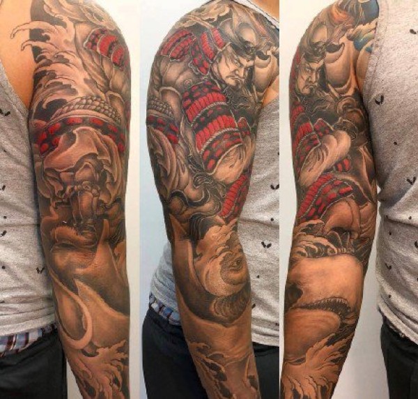 传统风格的一组男性花臂和花腿纹身图案欣赏