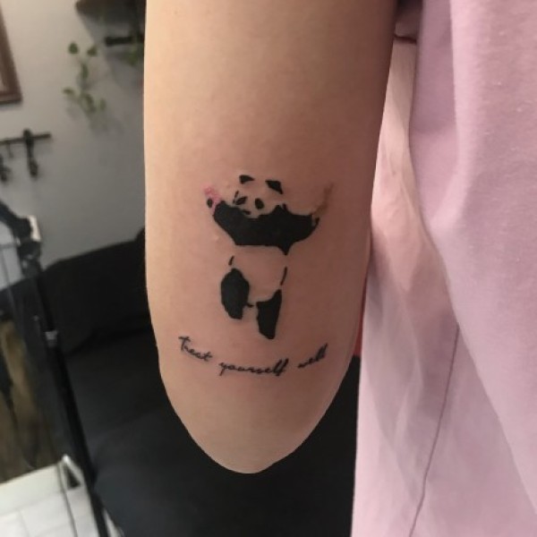 熊猫纹身图 女生大腿上大树和熊猫纹身图片