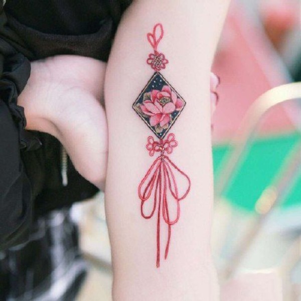 手臂上纠缠在一起像中国结的双头怪兽纹身