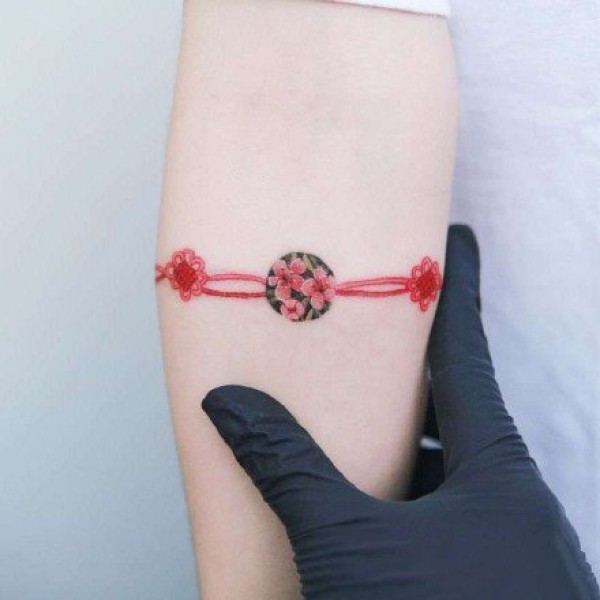 手臂上纠缠在一起像中国结的双头怪兽纹身