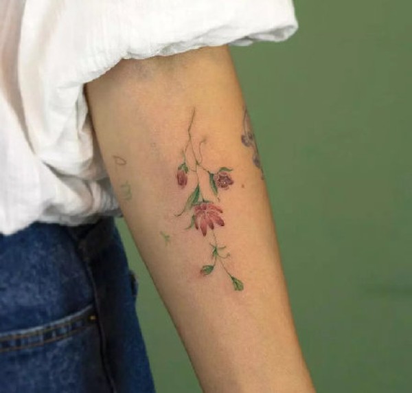 和实物非常相似的手臂花朵纹身图案