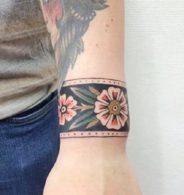 小臂手腕处很有民族风情的手环臂环纹身图案