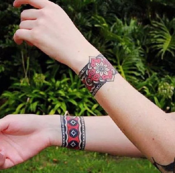 小臂手腕处很有民族风情的手环臂环纹身图案