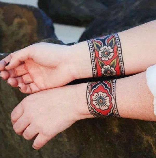 小臂手腕处很有民族风情的手环臂环纹身图案