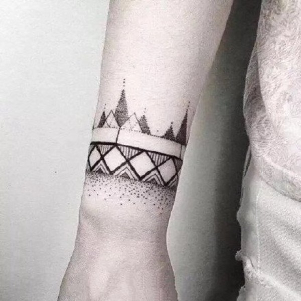 小臂手腕处很有民族风情的手环臂环纹身图案