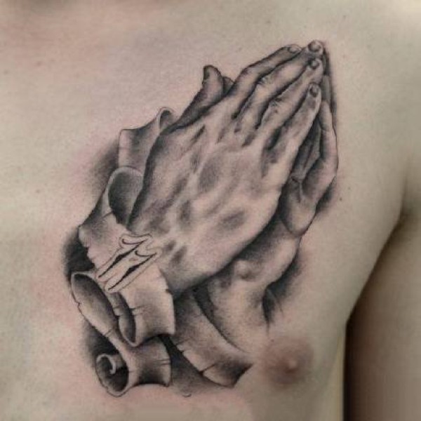 祈祷之手纹身图 黑灰写实的祈祷之手纹身图案