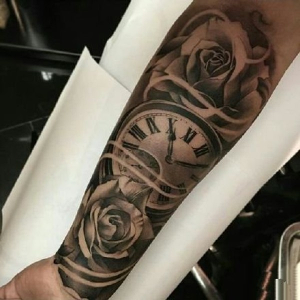 小臂钟表纹身 18款欧美风格包臂钟表纹身图案