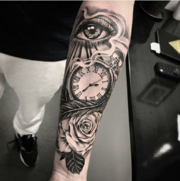 小臂钟表纹身 18款欧美风格包臂钟表纹身图案