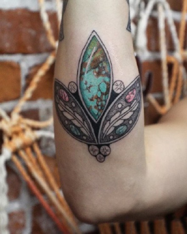 漂亮宝石来点缀的装饰风格黑色点刺纹身图案