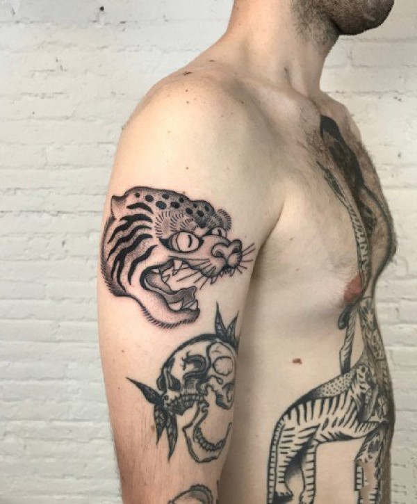 男性们都喜欢这样帅气的凶猛的老虎纹身图案