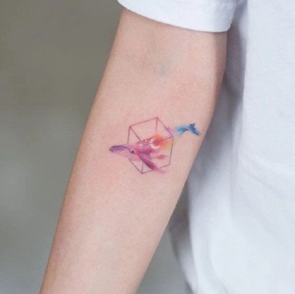 9张漂亮的水彩色鲸鱼纹身图案作品