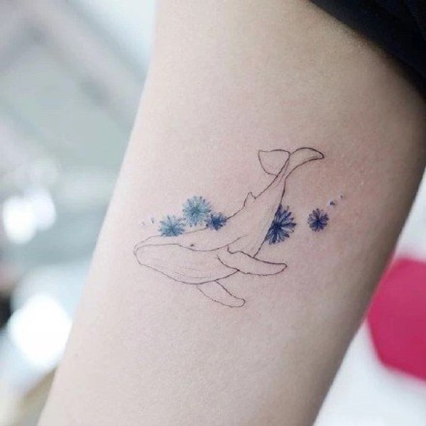 萌萌的鲸鱼纹身--适合女生的小清新鲸鱼纹身图案作品