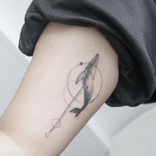 萌萌的鲸鱼纹身--适合女生的小清新鲸鱼纹身图案作品